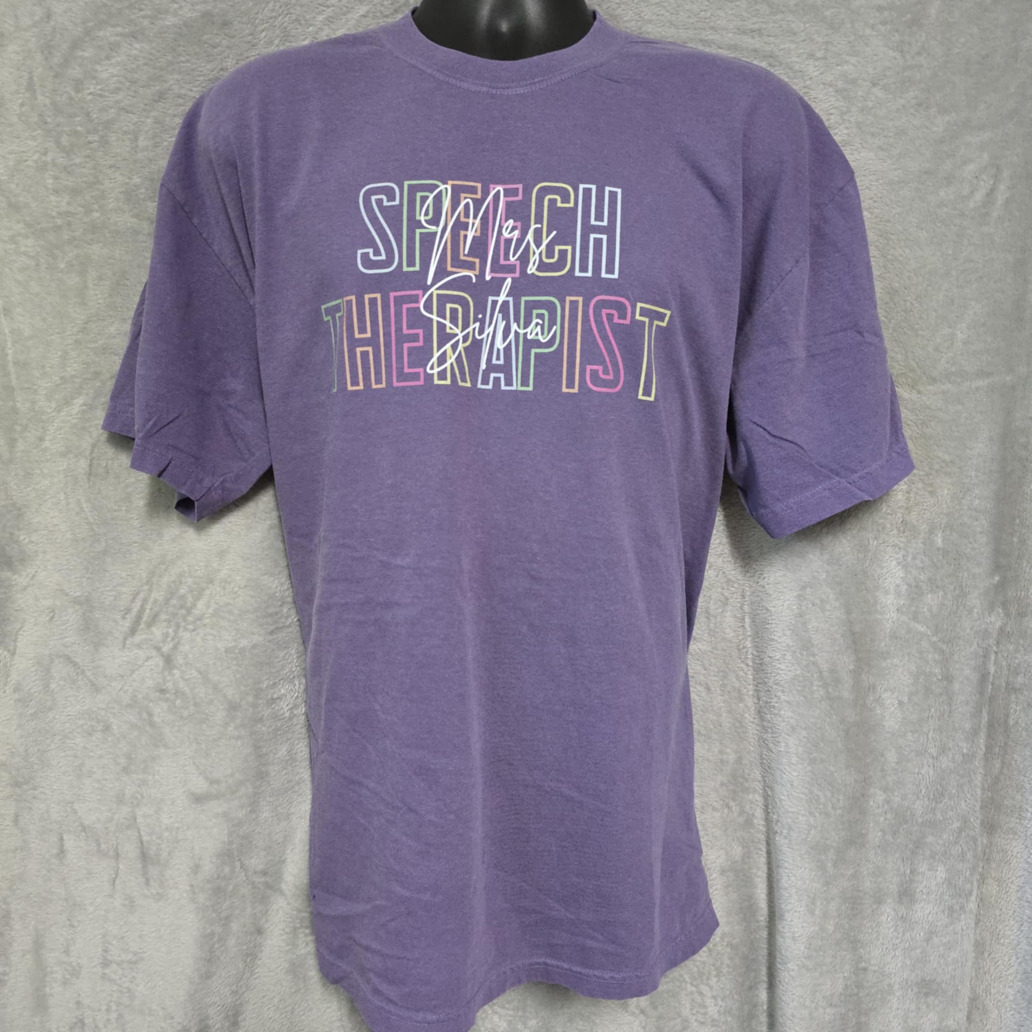 The color shown is Comfort Color Grape. Please list your color and personalization in the comments section at checkout!