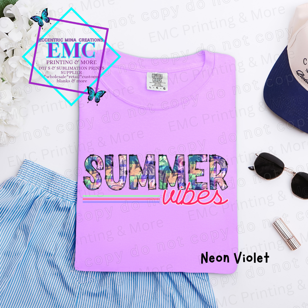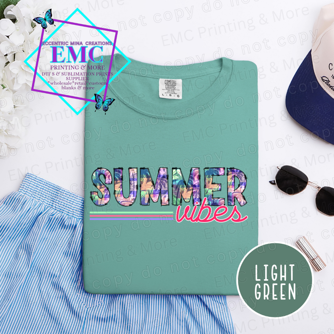 Feel those tropical "SUMMER vibes" with this vibrant design! The word "SUMMER" is filled with a lively, lush tropical print, bringing all the island energy to your look. It's bold, colorful, and instantly transports you to a sunny paradise – perfect for anyone craving that vacation feeling!