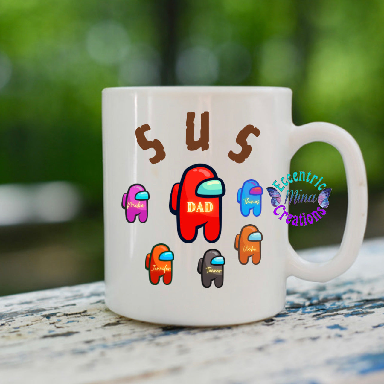 This personalized SUS mug is a perfect addition to your kitchen. Crafted from ceramic, the 10z or 15oz mug is custom-made with all your favorite SUS kiddos. Simply add names and color choices in the "notes" when you check out and we will send you the design for approval before making your mug. Enjoy your morning coffee in your unique mug!